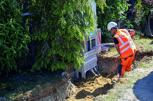 Praxis bei STREICHER. Dank dieser nahtlosen Abstimmung innerhalb der Gruppe schreitet das Projekt zügig voran. Bisher wurden 13.459 m der Nahwärme-Hauptleitung sowie 35.431 m Breitband-Hauptleitungen verlegt. Von den insgesamt 1.004 geplanten Hausanschlüssen für das Breitbandnetz wurden bereits 628 St. realisiert und bei der Nahwärme sind 195 St. von 518 Anschlüssen fertiggestellt.